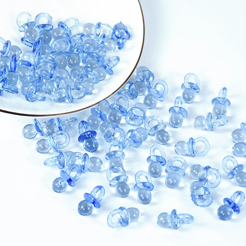 50pcs Mini Acrylic Blue Pink Pacifier Nipple Gender Reveal Table Scatter for Baby Shower Kids Birthday Party Decoration Supplies