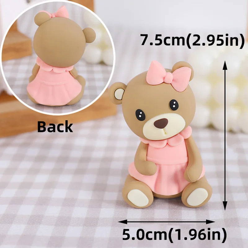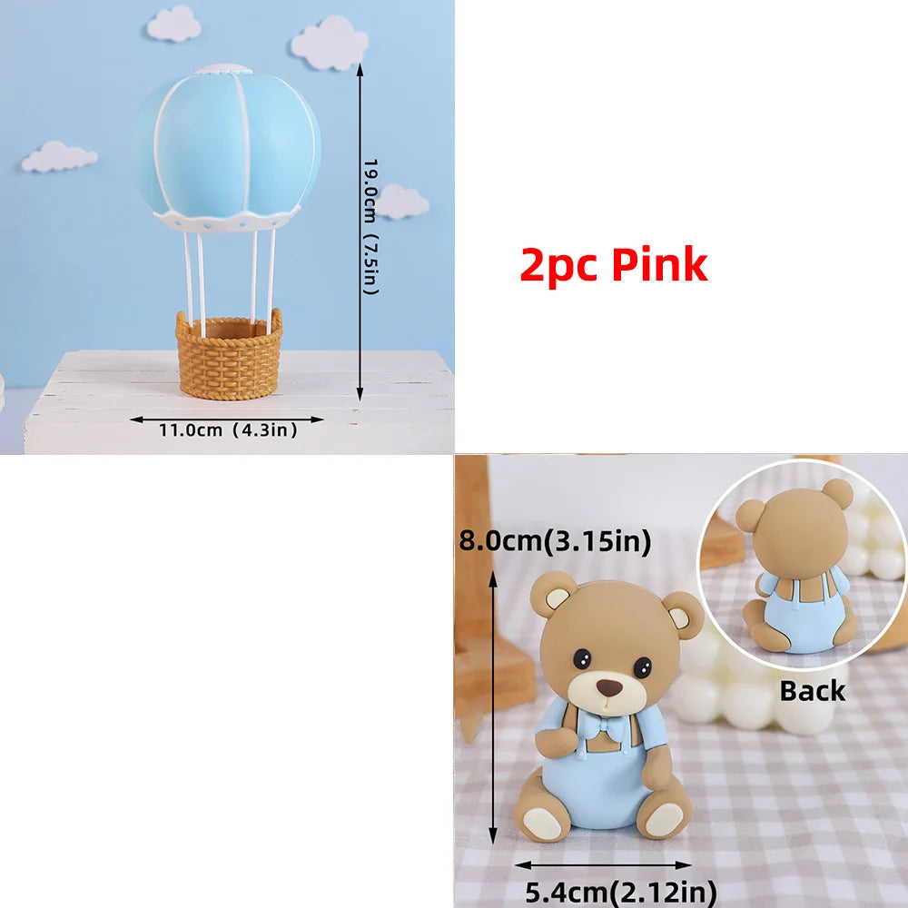 Bear Cake Toppers for Boy or Girl Baby Shower Children's Birthday Party Decoration Hot Air Balloon Cake Topper Pink Blue Green